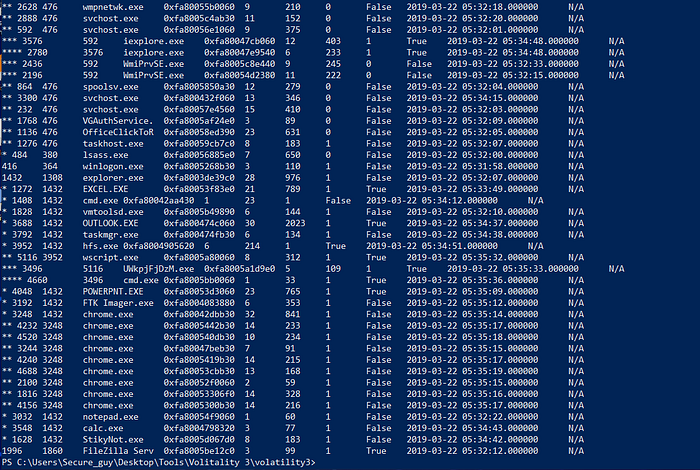 To list processes, you need to use the “windows.pslist” plugin in the same place where you previously used “windows.info.” Now, you just need to locate “notepad.exe.”
