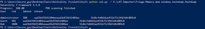 To answer this question, I used the windows.hashdump.Hashdump plugin.