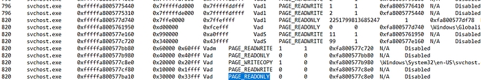 In this question, I came across an interesting thing. When attempting to search for 0x00000000033c0000, Notepad showed zero results. However, interestingly enough, to answer the question, you need to search for only 0x33c0000. This happens because Volatility 3 prints output a bit differently than Volatility 2, which was used to create this room. So, after searching for this string of characters, I discovered that the answer is PAGE_NOACCESS.