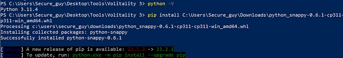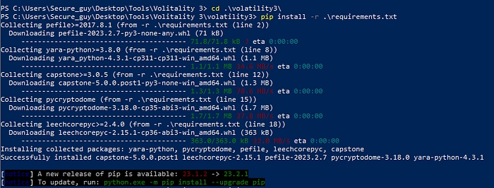 And the last thing we need to install is the contents of the requirements.txt file located in the volatility installation folder. To do this, execute the command below in PowerShell.